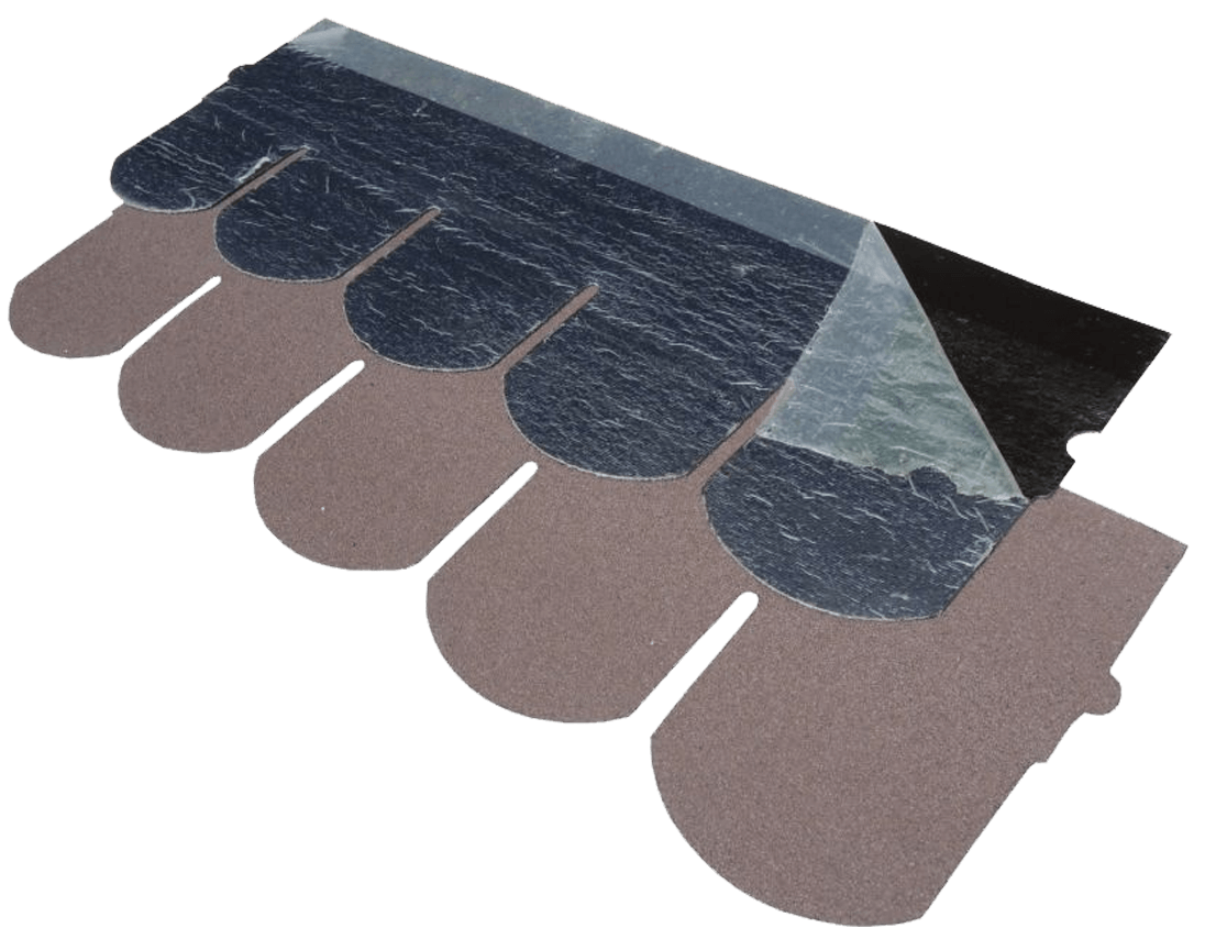 Tetők fedésére alkalmas üvegfátyol betétes, oxidált bitumenes alapú, színes palaőrlemény fedőréteggel ellátott zsindely.