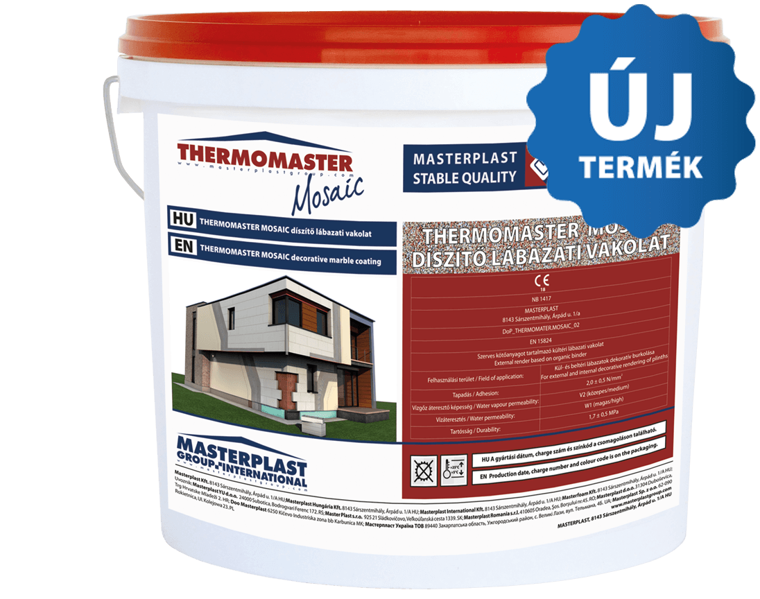 A homlokzat egyedi színezésére szolgáló vakolatok között megkülönböztetünk kapart és gördülőszemcsés típusokat, 1,5 és 2mm szemcsenagysággal.